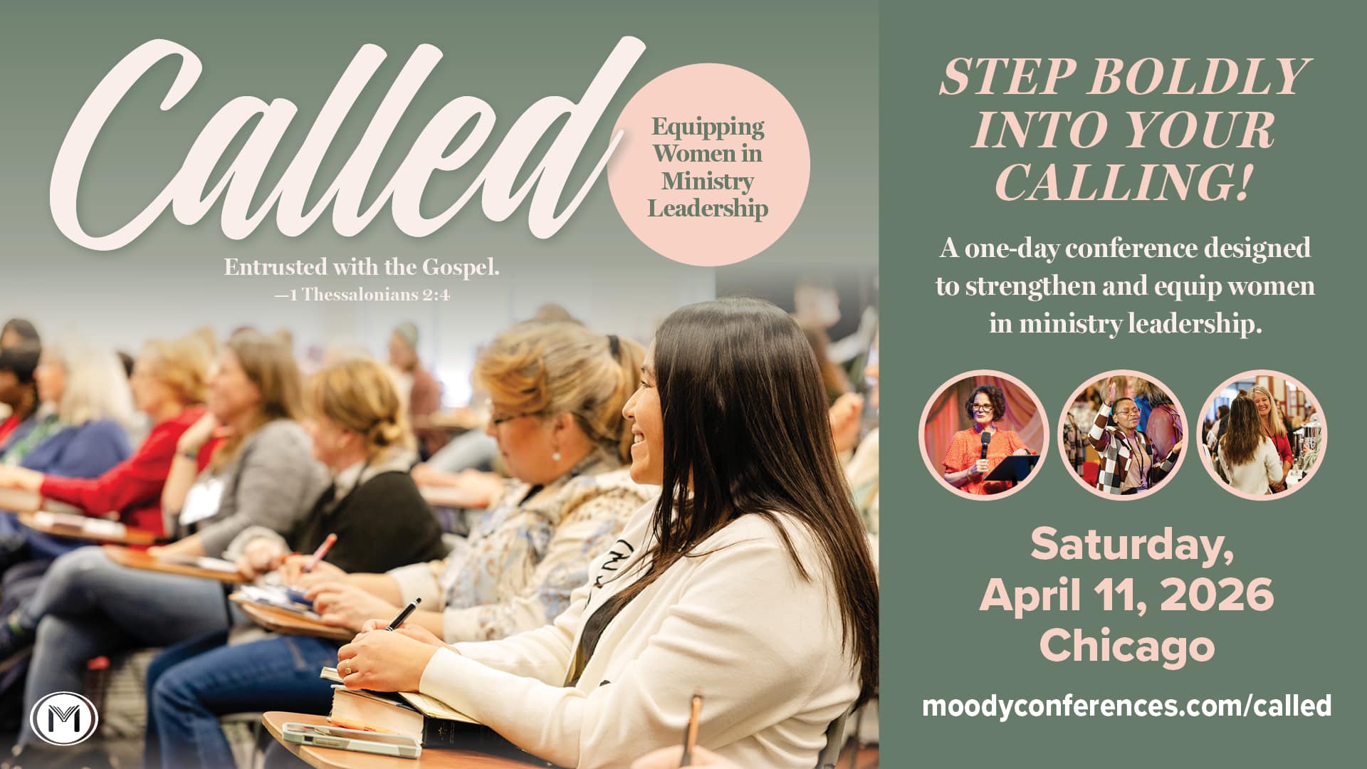 Called is a one-day training event designed to strengthen and equip women who serve in ministry leadership. Join us on Moody’s Chicago campus or online with women from across the Chicago city—as together we seek to be encouraged in our calling to serve God. We know not every woman sees herself as a ministry leader, but every woman is called to follow Jesus. Because of that, we are pleased to include several workshops not just for leaders, but also for any woman who wants to grow in faith and be encouraged in everyday discipleship.